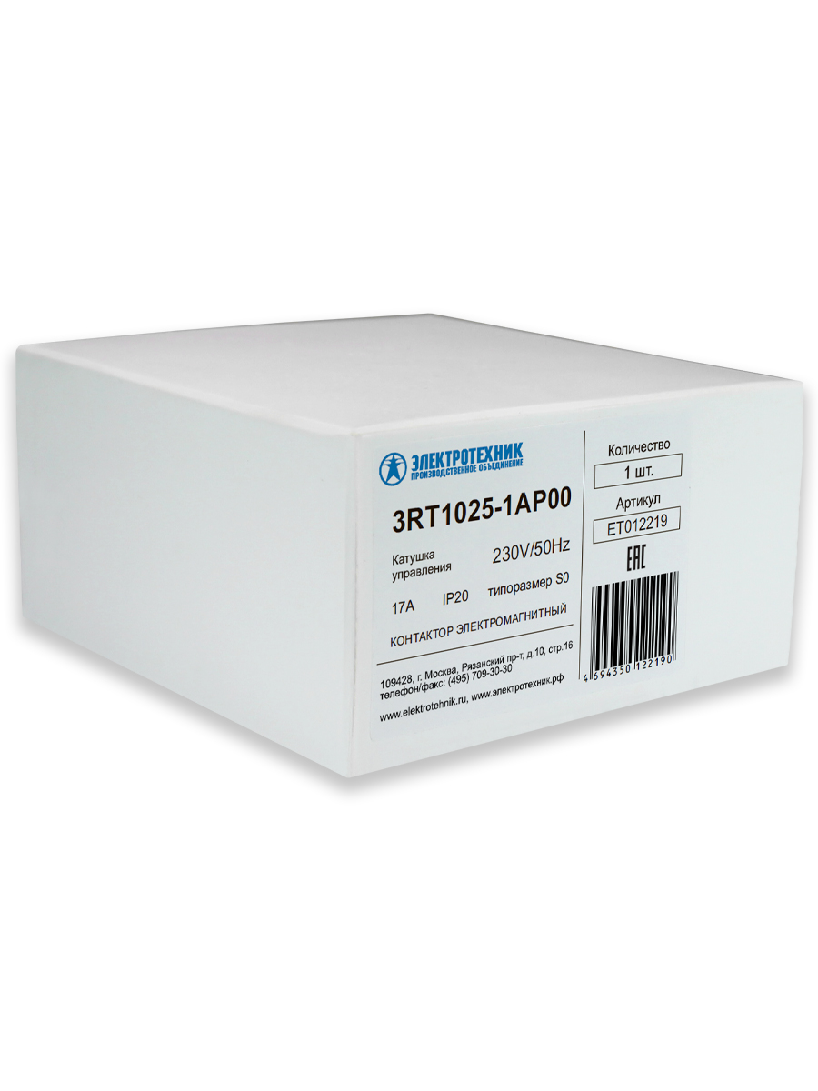 3RT1025-1AP00, 3-пол., 17A, AC-3, 7,5кВт/400V, 230V AC, 50/60Гц, типоразмер S0, винтовые клеммы, IP20, контактор электромагнитный (ЭТ)