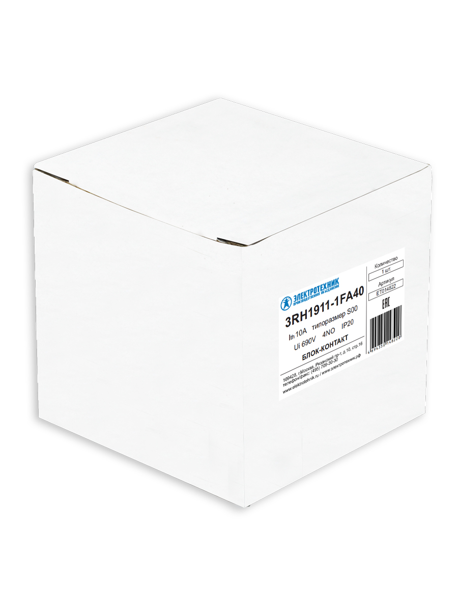 3RH1911-1FA40, 4НО, для контакторов типоразмера S00, фронтальный, винтовые клеммы, IP20, блок-контакт (ЭТ)