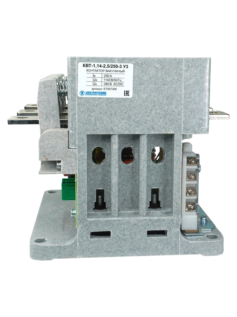 КВТ-1,14-2,5/250-3 У3, трёхполюсный, 250А, 380В AC/DC, 4з+3р, нереверсивный, без реле, IP00, контактор вакуумный (ЭТ)