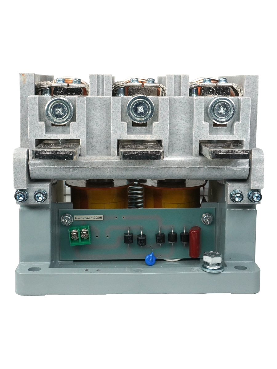 Контакторы вакуумные серии КВТ открытого исполнения с естественны воздушным охлаждением, встраиваемые в комплектные устройства, предназначены для использования в пускателях, станциях управления, для коммутации токов включения и отключения асинхронных электродвигателей с короткозамкнутым ротором и других приёмников электроэнергии в системах дистанционного управления электроприводами с тяжёлым режимом работы в цепи переменного тока 50-60 Гц, напряжением до 1140 В.Благодаря высокой электрической прочности вакуумного промежутка и отсутствию среды, поддерживающей горение дуги, электрическая дуга распадается и гаснет.