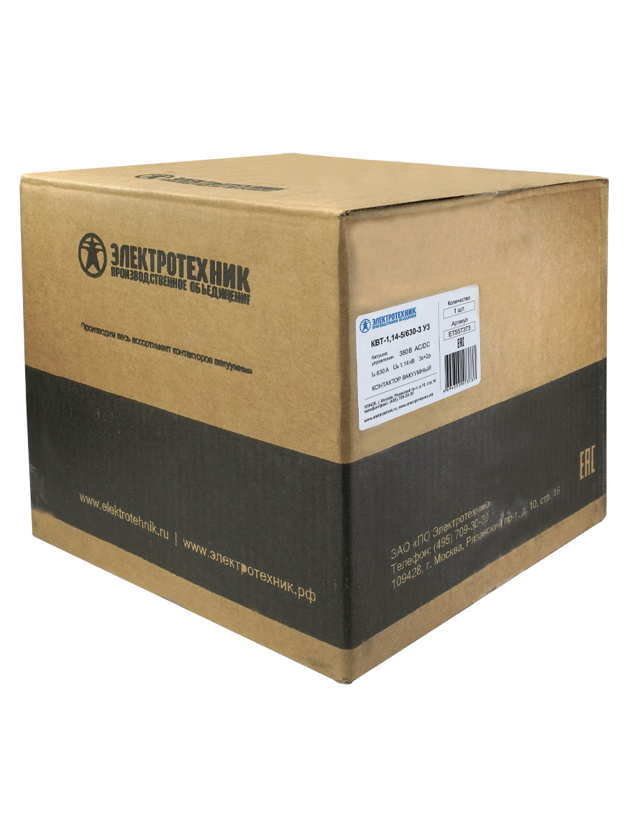 КВТ-1,14-5/630-3 У3, трёхполюсный, 630А, 380В AC/DC, 3з+2р, нереверсивный, без реле, IP00, контактор вакуумный (ЭТ)