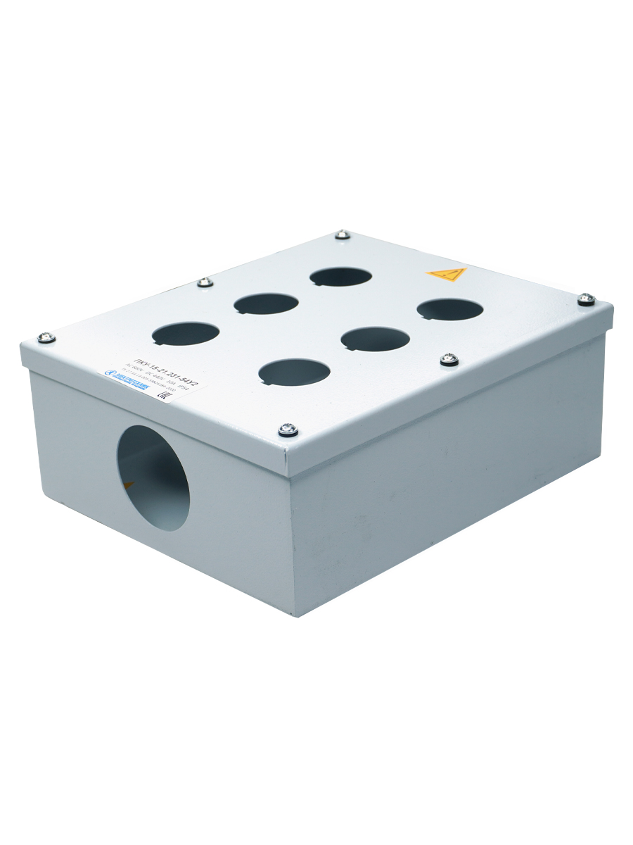 Производим и поставляем. Товар сертифицирован.Корпус ПКУ 15-21 представляет собой металлический короб с порошковым покрытием, состоящий из основания с отверстием под сальник типа PG, и крышки с отверстиями для установки выключателей типа ВК, КЕ, переключателей типа ПЕ и светосигнальной арматуры типа СКЛ. Размер посадочного места под аппарат - Ø 30 мм.