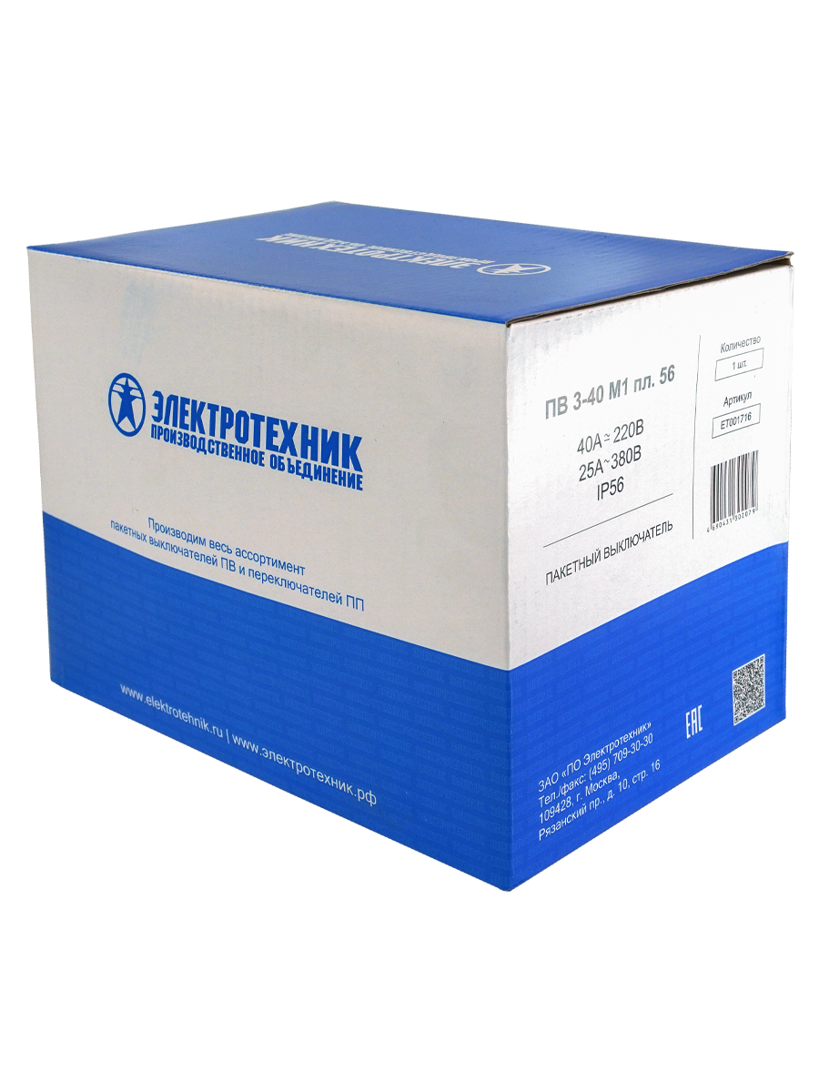 ПВ 3-40 М1 пл. 56 (40А, пластмассовый корпус, IP56), выключатель пакетный (ЭТ)