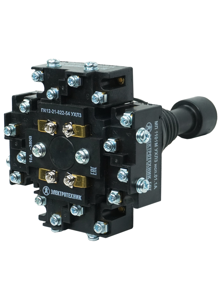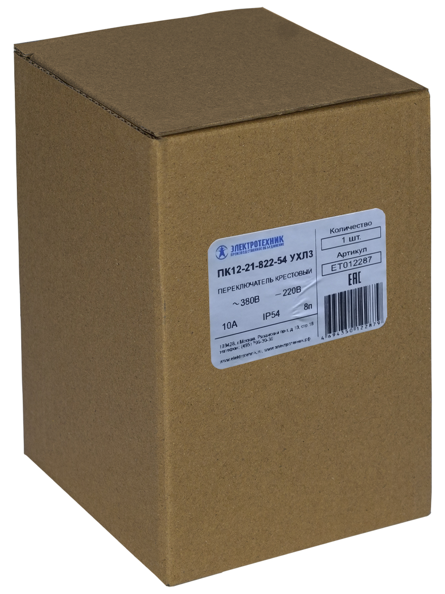 ПК12-21-822-54 УХЛ3, 380В/50Гц, 10А, без защиты от попадания стружки, рукоятка - 8 полюсов с пятью фиксирующими положениями, толкатель - 2 полюса, IP54, переключатель крестовой (ЭТ)