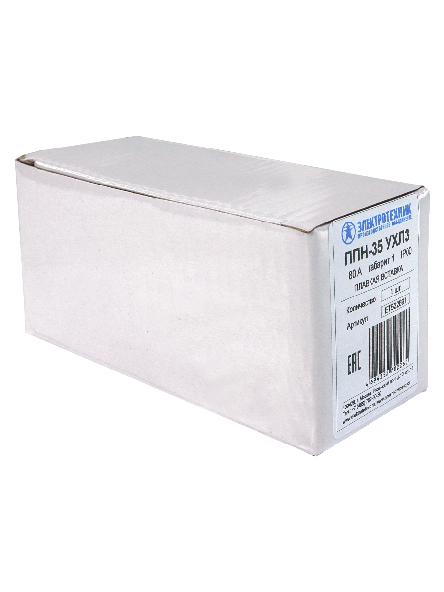 Плавкая вставка ППН-35 УХЛ3, 80А, габарит 1, IP00 (ЭТ)