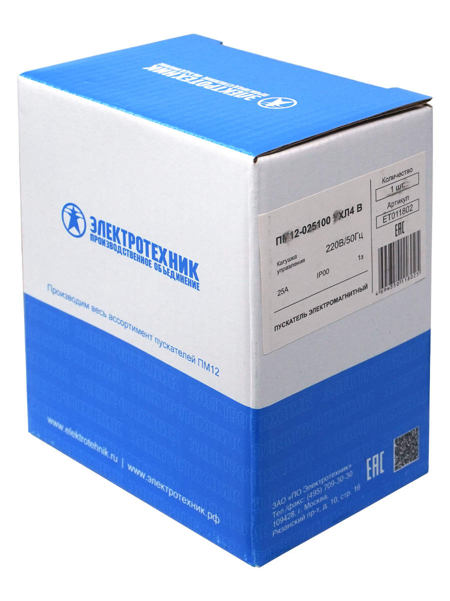 ПМ12-025100 УХЛ4 В, 220В/50Гц, 1з, 25А, нереверсивный, без реле, IP00, пускатель электромагнитный (ЭТ)