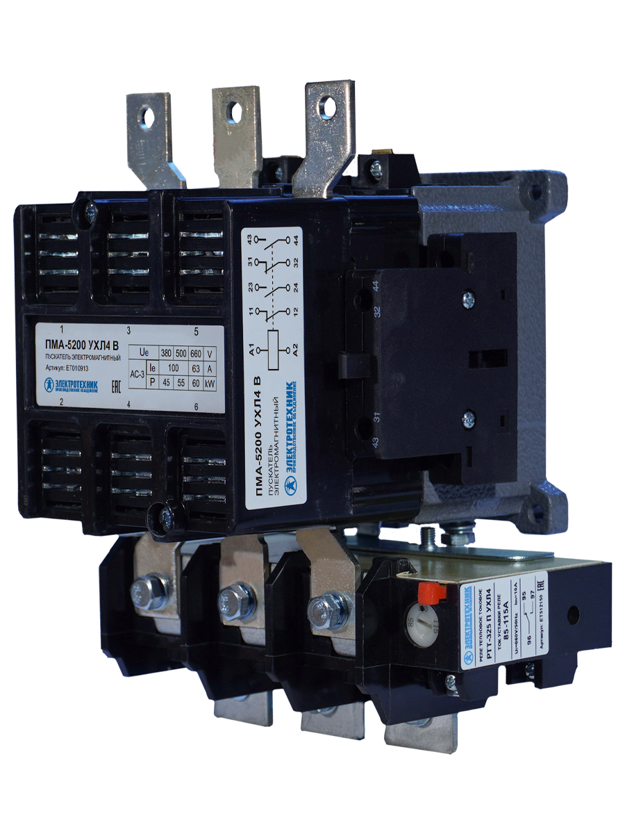 ПМА-5200 УХЛ4 В, 220В, 2з+2р, 100А, нереверсивный, с реле РТТ-325 85-115А, IP00, пускатель электромагнитный (ЭТ)