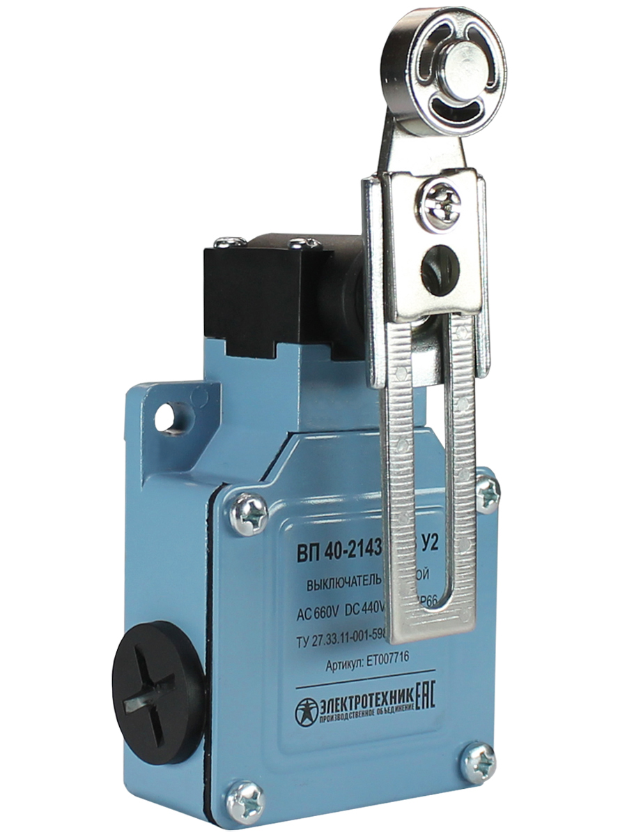 Выключатели путевые серии ВП 40 предназначены для применения в электрических цепях управления, сигнализации и контроля относительного положения подвижных частей механизма в пространстве.