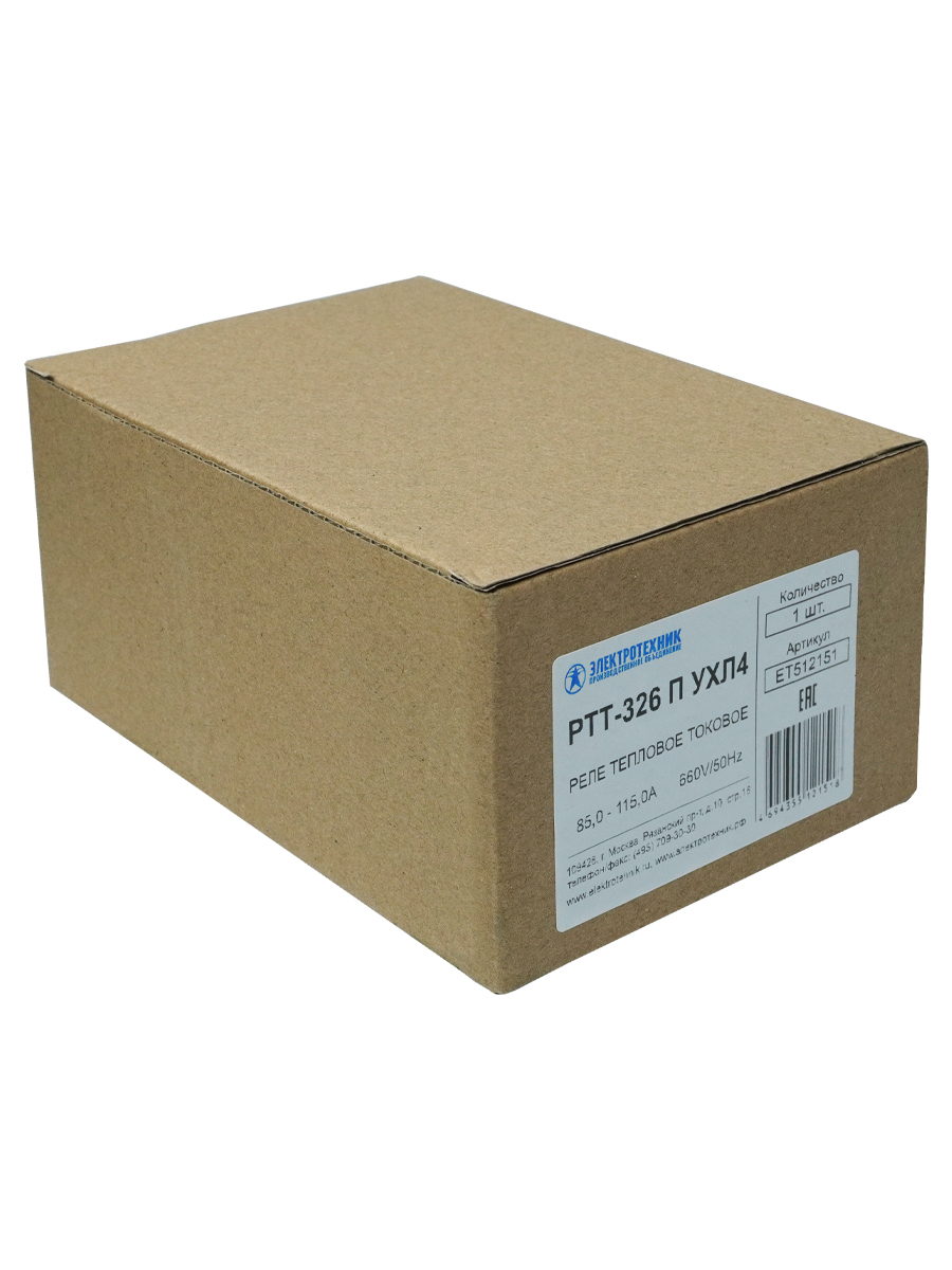 РТТ-326 П УХЛ4, 100А, 85,0 - 115,0А, 660В/50Гц, 1з+1р, ручной возврат, IP00, реле электротепловое токовое (ЭТ)
